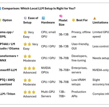 📊 Comparison: Which Local LLM Setup Is Right for You?